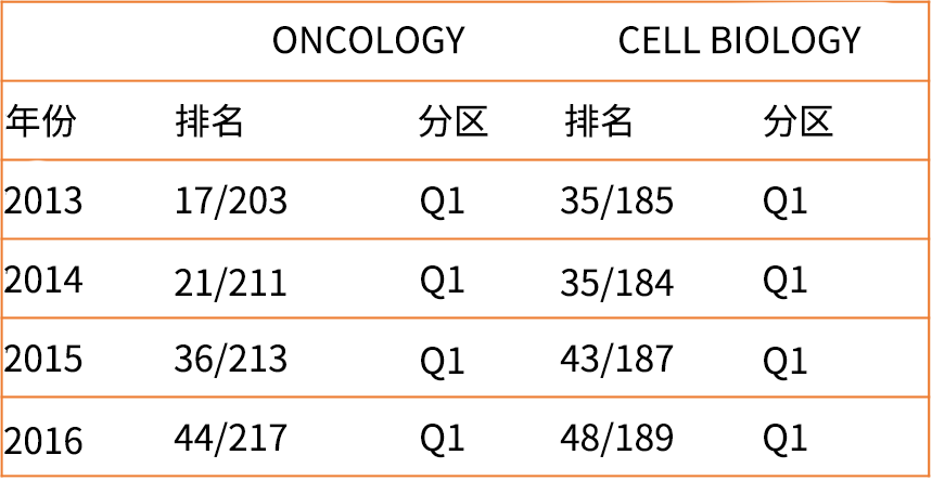 国内科研单位更多是中科院制定的期刊分区来进行评价,Oncotarget的中科院大类分区始终为医学1区期刊,且属于Top期刊的范畴。小类学科分区均属于肿瘤学和细胞生物学2区期刊。