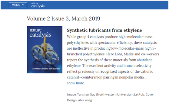 日前,由LetPub设计制作的封面成功被Nature旗下期刊nature catalysis选为本月期刊封面并刊登在其官网上,并特别注明了"LetPub":