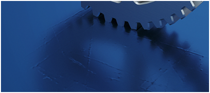 最后,为了增加与齿轮接触的表面的质感、使背景更为丰富,设计师在齿轮的下面添加了一个金属质感的平面,为其添加了颗粒感和划痕,同时增强了反射的层次感,使背景整体虚实得当,既保留了足够的细节使画面更为丰富,又不会因为太过明显而喧宾夺主: