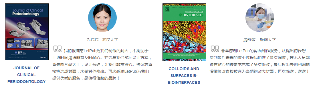 目前LetPub已经为国内众多学者制作了文章封面,并被挑选为期刊封面,部分范例经过客户授权后展示在LetPub官网上: