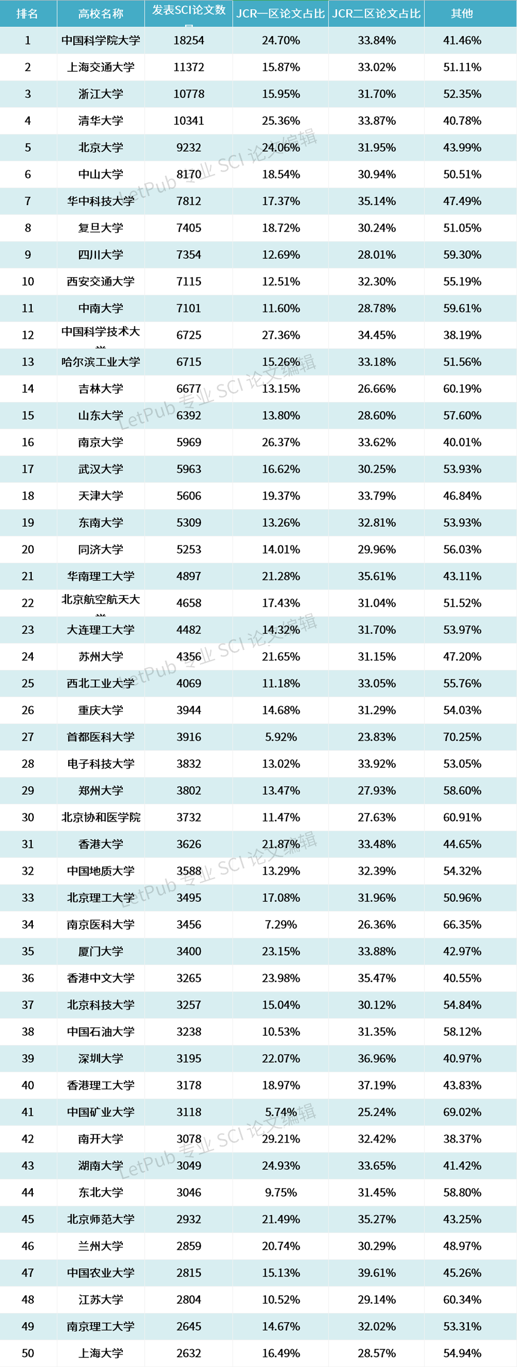 2018年中国高校发表JCR二区期刊论文数量排名【Top50】