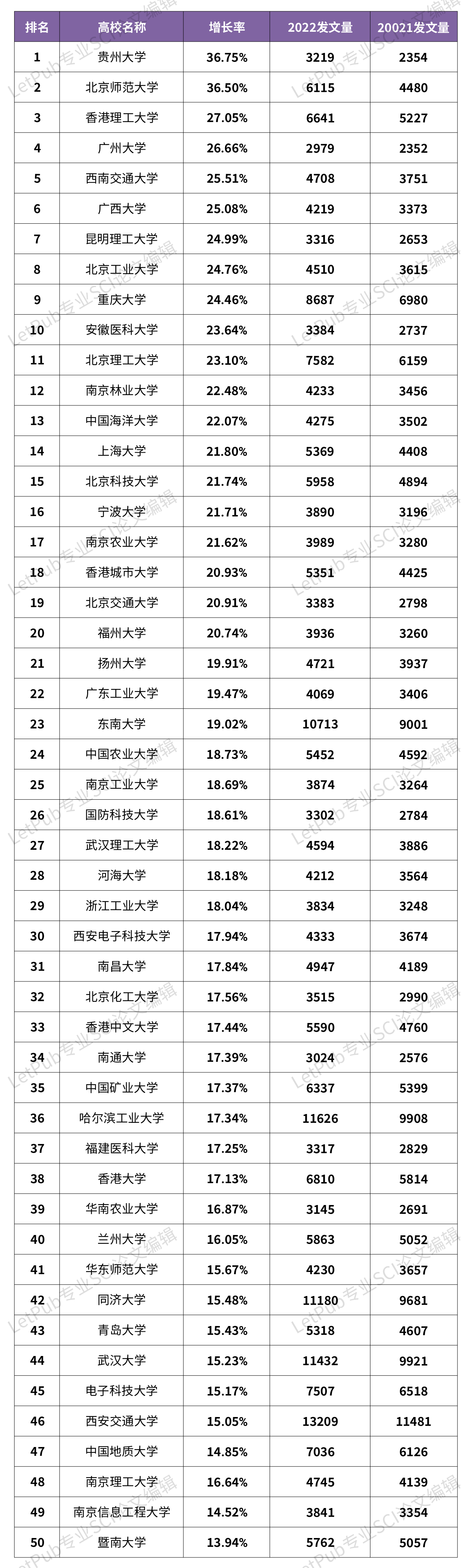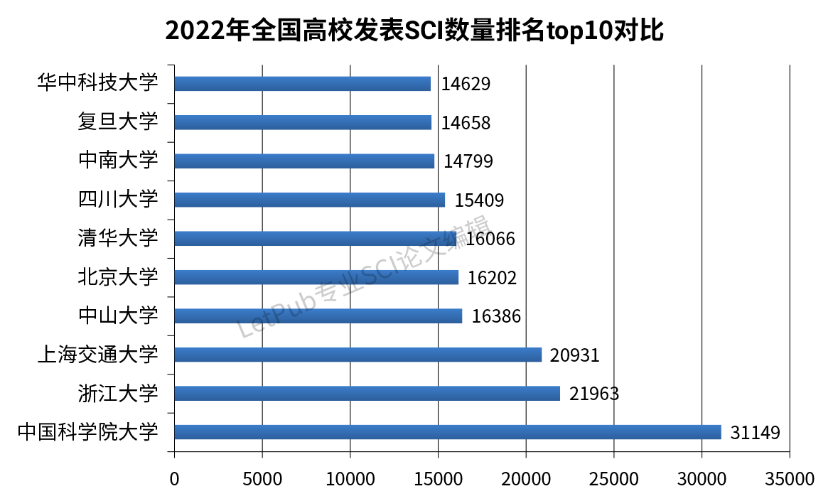 LetPub最新发布《2022年中国高校发表SCI论文数量排名》和《2022年中国高校发表SCI论文增长率排名》统计报告**,初步观察最近一年中国高校在SCI收录期刊上发表科研论文的情况,以及各高校在高水平期刊上发表论文的情况。同时我们还将其与2021年度的相关指标和排名进行比较,对部分高校发表SCI论文数量的增长情况作了进一步统计。